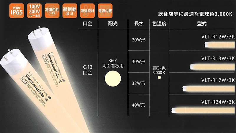 発光部の管には継ぎ目が無く、防水防塵に強い(IP65)
